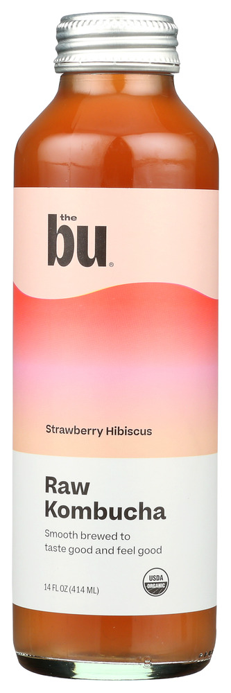 • THE BU: Strawberry Hibiscus Raw and Pure Kombucha, 14 oz