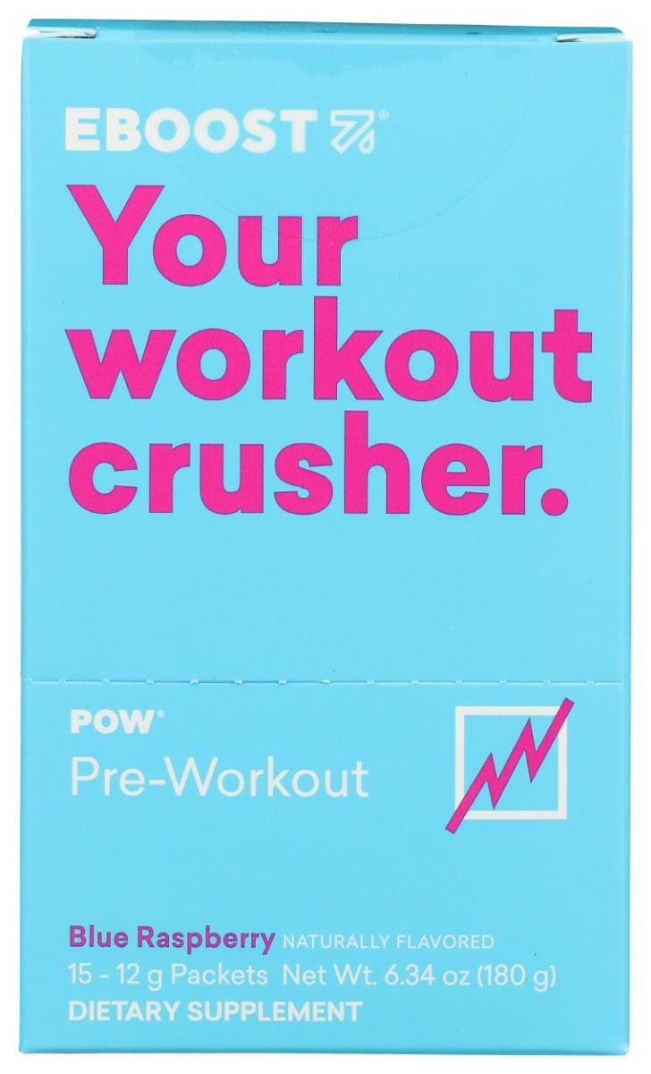 • EBOOST: POW Pre Workout Powder Blue Raspberry 15Packets, 6.34 oz
