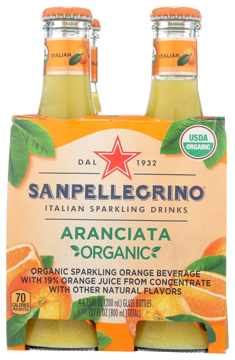 • SAN PELLEGRINO: Organic Aranciata 4 Pack (6.75 Ounce Each) Sparkling Beverage, 27 fo