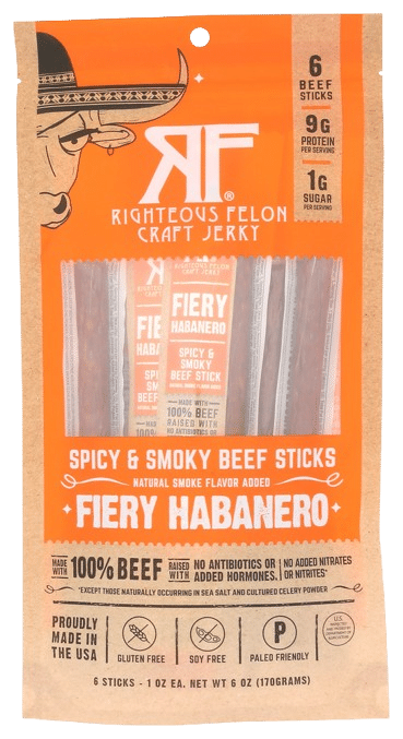 • RIGHTEOUS FELON CRAFT JERKY: Fiery Habanero Beef Stick 6Pk, 6 oz