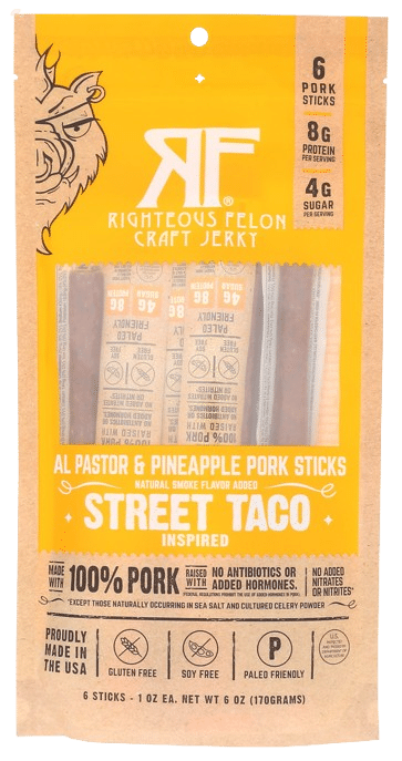 • RIGHTEOUS FELON CRAFT JERKY: Street Taco Pork Stick 6Pk, 6 oz
