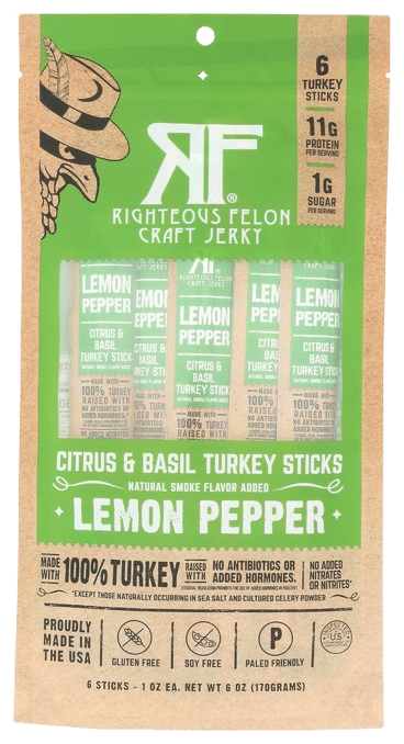 • RIGHTEOUS FELON CRAFT JERKY: Lemon Pepper Turkey Stick 6Pk, 6 oz