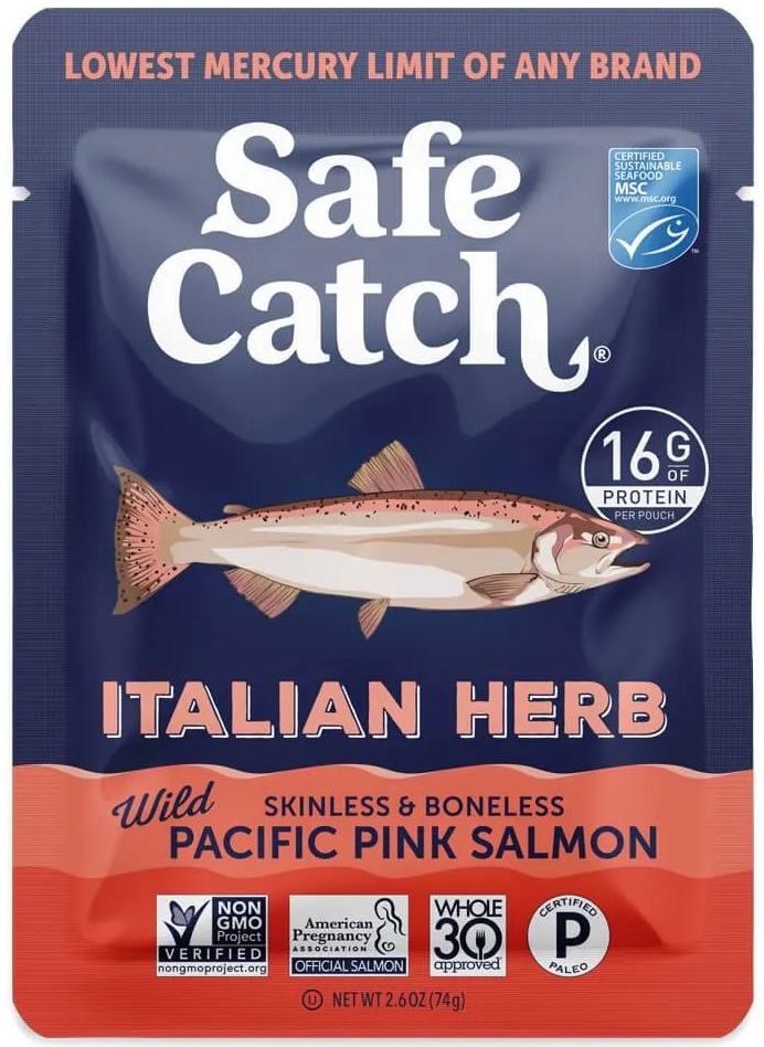 • SAFECATCH: Wild Pacific Pink Salmon Italian Herb Pouch, 2.6 oz