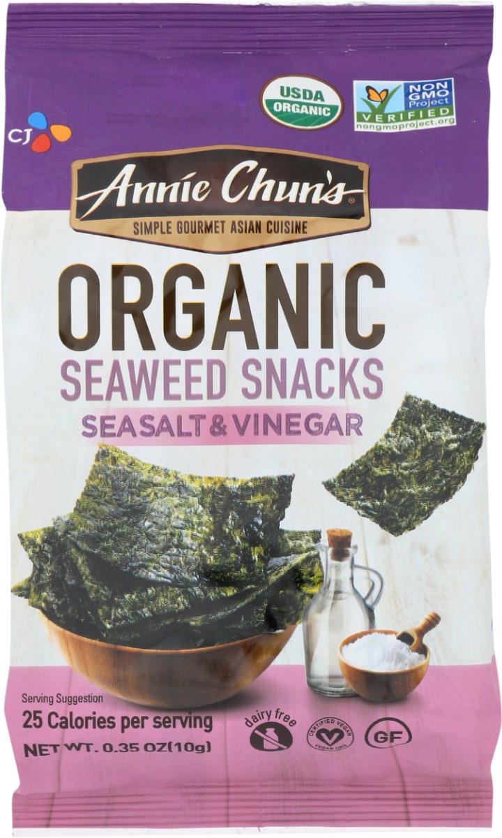 • ANNIE CHUNS: Organic Seaweed Snacks Sea Salt & Vinegar, 0.35 oz
