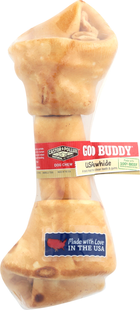 Made from 100% USA beef and basted in a natural chicken flavor, our rawhide provides a delicious way to help keep your dog’s teeth and gums clean. Rawhide is also a great solution for aggressive chewers, or puppies that are inclined to chew on shoes, furniture, or anything they can find. Plus, they make great fetch toys! Many rawhides are sourced in the USA, but processed overseas. All of our rawhide is made in the USA from start to finish. That’s our rawhide guarantee! Comes in a 8-9″ and 10-11″ Rawhide Bone.