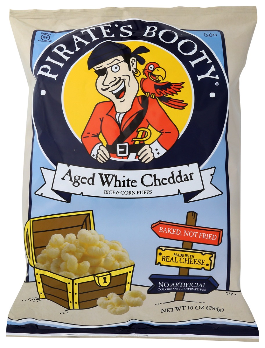Hoist the sails and prepare to taste a treasure of the ages with PIRATE’S BOOTY Aged White Cheddar made from rice and corn. Each bag is gluten free with no artificial colors. Blended with real aged white cheddar cheese and baked to pirate perfection, keep these 1 oz bag of puffs stocked for lunchboxes or voyages on the go!
