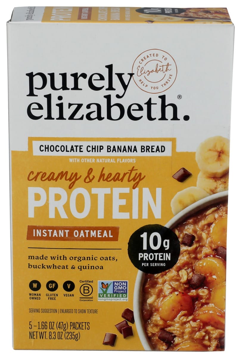 Purely Elizabeth Apple Harvest Crumble Protein Instant Oatmeal is packed with 10 grams of plant-based protein and has a creamy and hearty texture. This bakery-inspired flavor is made with organic, 100% whole grains such as oats, buckwheat, and quino,a and it has the taste of a warm baked apple crumble evoked by the comforting flavors of real dried apples and notes of cinnamon spice.